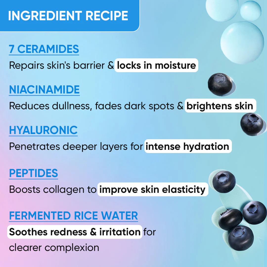 🔹 ত্বকের ব্যারিয়ার পুনর্গঠন করে: এতে থাকা 7 Ceramides ত্বকের প্রাকৃতিক ব্যারিয়ার মেরামত করে, ফলে ত্বক বাইরের ক্ষতিকর উপাদান থেকে সুরক্ষিত থাকে।