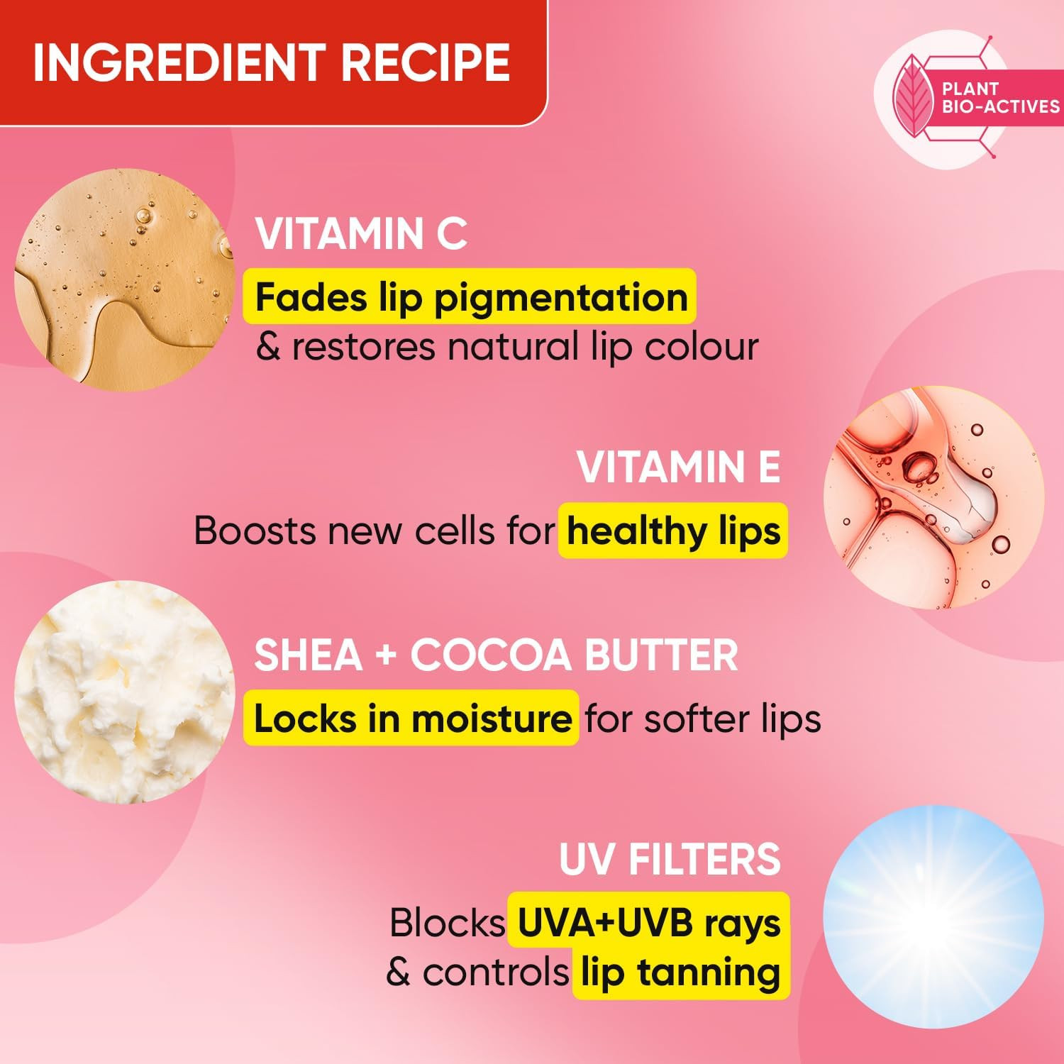 🔹 Shea + Cocoa Butter: ঠোঁটকে ময়েশ্চারাইজ করে: এই উপাদান দুটি ঠোঁটকে গভীরভাবে আর্দ্র রাখে, যা শুষ্কতা এবং ফাটা ঠোঁট দূর করতে সাহায্য করে।