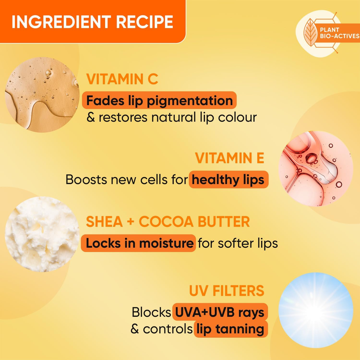 🔹 Vitamin C: এটি একটি শক্তিশালী অ্যান্টি-অক্সিডেন্ট যা ত্বকের পিগমেন্টেশন (রঙের পরিবর্তন) কমাতে সাহায্য করে। এছাড়া, এটি ত্বকের উজ্জ্বলতা বাড়ায় এবং নতুন ত্বক কোষ গঠনে সহায়তা করে। ঠোঁটের প্রাকৃতিক রঙ ফিরিয়ে আনতে সহায়ক।