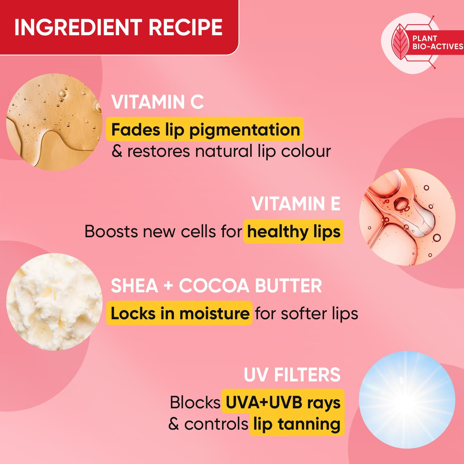 🔹 Vitamin C: এটি একটি শক্তিশালী অ্যান্টি-অক্সিডেন্ট যা ত্বকের পিগমেন্টেশন (রঙের পরিবর্তন) কমাতে সাহায্য করে। এছাড়া, এটি ত্বকের উজ্জ্বলতা বাড়ায় এবং নতুন ত্বক কোষ গঠনে সহায়তা করে। ঠোঁটের প্রাকৃতিক রঙ ফিরিয়ে আনতে সহায়ক।