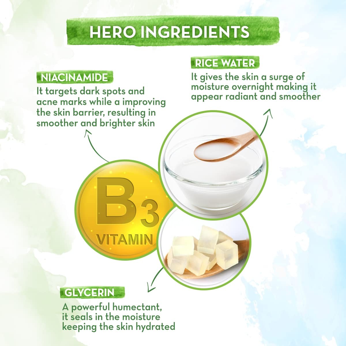⏩ আর্দ্রতা প্রদান: চালের পানির আর্দ্রতা ত্বকে সারা রাত ধরে থাকে, যা ত্বককে উজ্জ্বল ও মসৃণ করে।