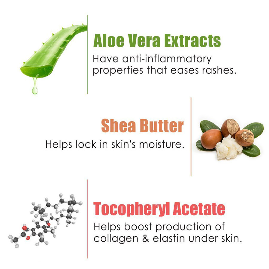⏩ অ্যালোভেরা, ল্যাকটিক অ্যাসিড, প্রো-ভিটামিন বি৫ এবং মধুর মতো উপাদানসমূহ ত্বকের লিপিড স্তরকে সুরক্ষা দেয় এবং দীর্ঘস্থায়ী আর্দ্রতা বজায় রাখে।