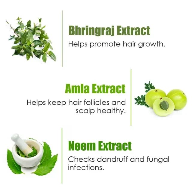 ⏩ নিম এক্সট্র্যাক্ট: স্ক্যাল্পে রক্ত সঞ্চালন বৃদ্ধি করে, চুলের ফলিকল পুষ্টি যোগায় এবং খুশকি প্রতিরোধ করে।