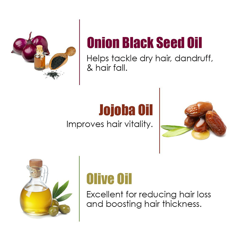 ⏩ রেড অনিয়ন সিড অয়েল এক্সট্রাক্ট: ফ্ল্যাভোনয়েড, সালফার সমৃদ্ধ যৌগ এবং ভিটামিন বি, সি, ডি ও ই সমৃদ্ধ; যা চুলকে শক্তিশালী করে, রুট ব্লক খুলে দেয় এবং স্ক্যাল্প ইনফেকশন নিয়ন্ত্রণ করে।